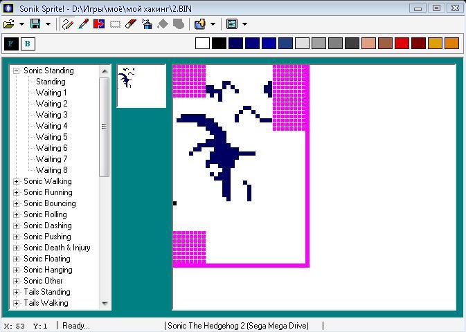 :) а это подскажите как мне сделать спрайт а у меня в проге sonic sprite выскакивает неполный спрайт.я уже пробовал палитру менять ,смотрю,пробую заново,и опять тоже самое .а в палитре ведь цвета есть что и в bmp-шке.поскажите хачу норм. спрайты для своего хака.